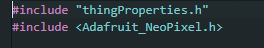 Se incluyen la librerías que vamos a utilizar, en este caso, las del thingProperties que a su vez utiliza las de arduino cloud y las de Neopixel para el manejo de la tira RGB: