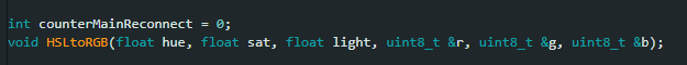 Ahora creo una función de conversión de tipo de sistema digital de representación del color. Esta función convierte la nomenclatura HSL del color que llega de arduino cloud a un RGB normal que es la nomenclatura que solemos trabajar en Arduino. Recibe los parámetros HUE, Saturation, ligh, y retorna los parámetros R, G y B.