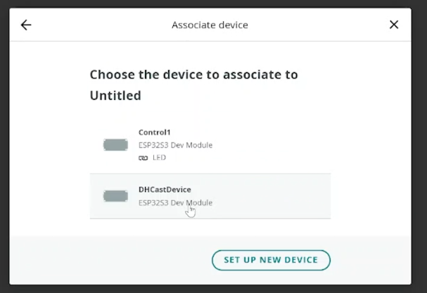 5. En la misma pestaña, se asocia el dispositivo que acabamos de crear en la sección anterior. Para esto, se presiona en el ícono de dispositivo asociado y luego se selecciona el dispositivo antes creado.